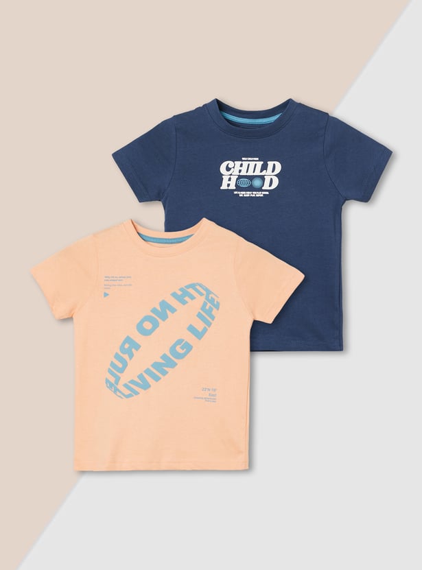 Upgrade your casual essentials with this pack of 2 printed T-shirts. Each tee is designed with a classic crew neck and half sleeves, offering everyday comfort with a stylish twist.