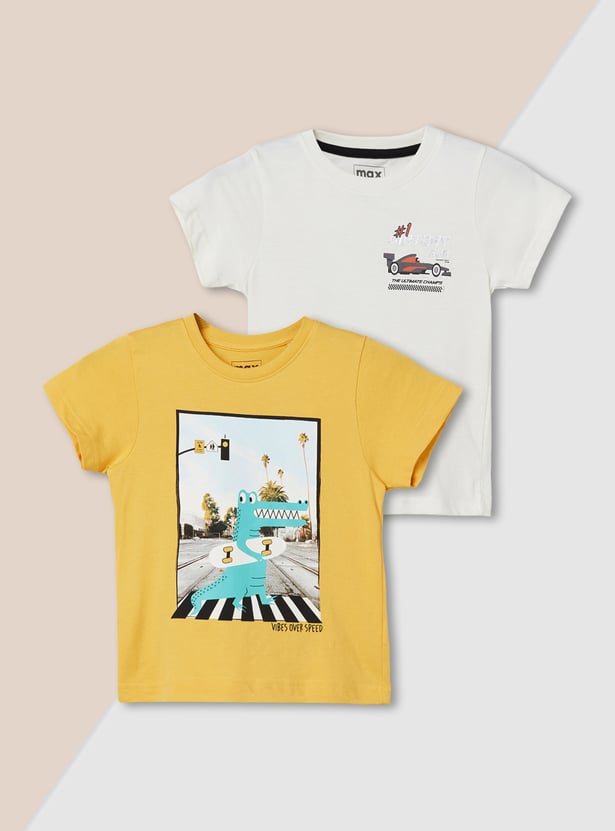 Upgrade your casual essentials with this pack of 2 printed T-shirts. Each tee is designed with a classic crew neck and half sleeves, offering everyday comfort with a stylish twist.