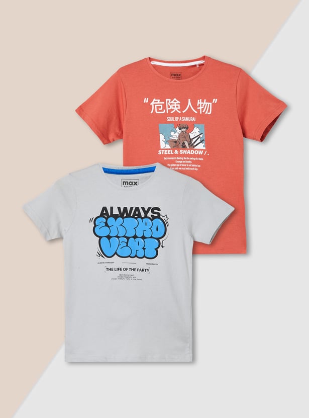 Upgrade your casual staples with this pack of 2 printed T-shirts. Designed with a classic crew neck and half sleeves, these tees offer all-day comfort with a stylish edge. T