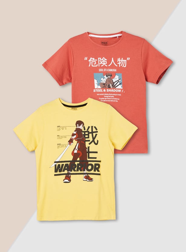 Refresh your casual essentials with this pack of two printed t-shirts, featuring classic crew necks and half sleeves. Soft and comfortable, each piece adds a stylish touch to your everyday looks.