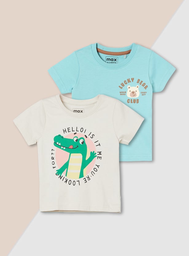 Refresh your casual collection with this fun pack of two printed T-shirts. Each tee features a classic crew neck and comfy half sleeves.