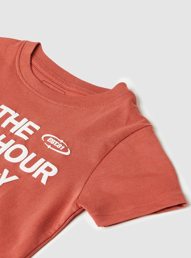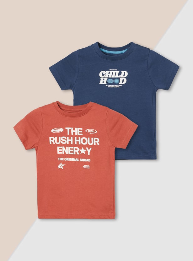 Update your basics with this pack of two printed T-shirts featuring a classic crew neck and half sleeves. Designed for a regular fit and comfort, these versatile tees are perfect for everyday wear.