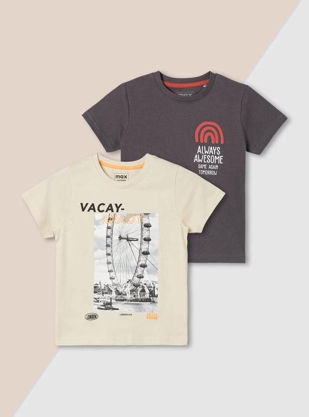 Refresh your casual collection with this printed t-shirt pack of 2. Featuring a classic crew neck and half sleeves, these tees are designed for everyday comfort and versatile styling.