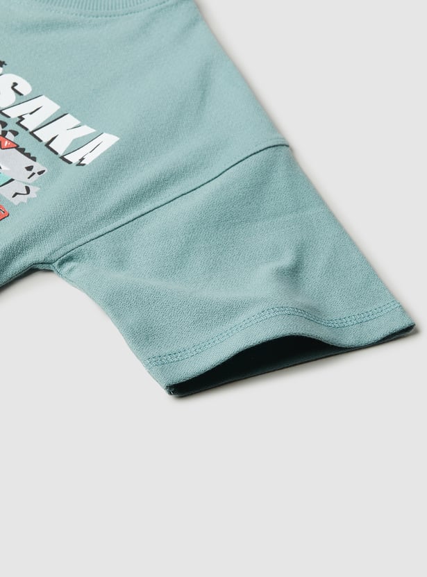 These pack of two printed T-shirts feature a classic crew neck and half sleeves. One has Osaka print, while other has placement print pattern. Perfect for playtime fun.