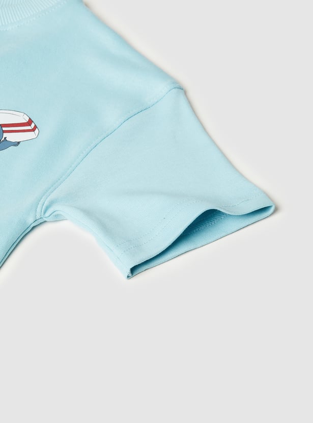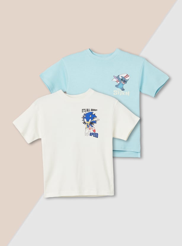This pack of two printed T-shirts adds fun to casual dressing with vibrant Sonic and Stitch prints on the front and back. Designed with a crew neck and half sleeves, these tees ensure all-day comfort and playful style.