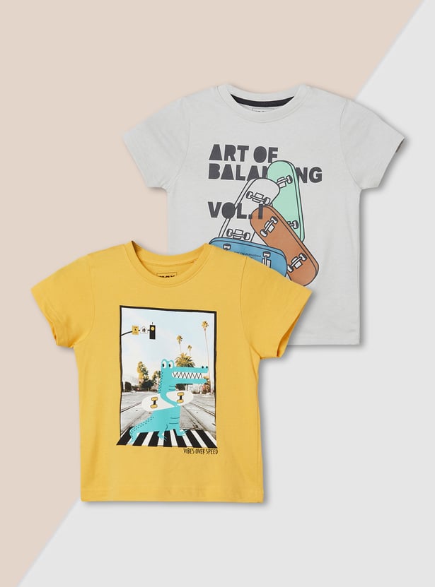 Refresh your casual collection with this printed t-shirt pack of 2. Featuring a classic crew neck and half sleeves, these tees are designed for everyday comfort and versatile styling.