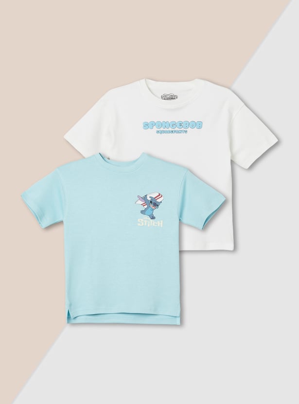 These pack of two printed T-shirts feature a classic crew neck and half sleeves. One has Stitch print, while other has placement print pattern. Perfect for playtime fun.