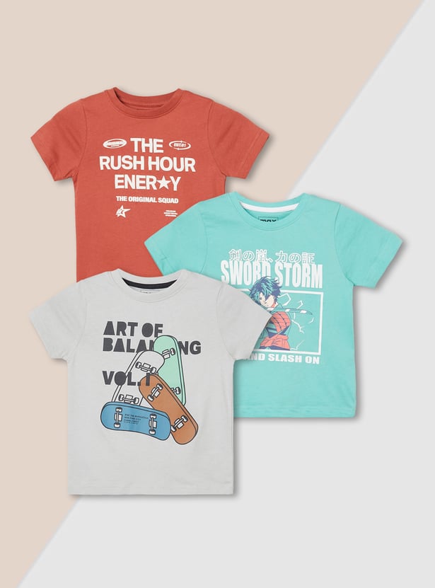 Refresh your casual essentials with this pack of three printed t-shirts, featuring classic crew necks and half sleeves. Soft and comfortable, each piece adds a stylish touch to your everyday look.