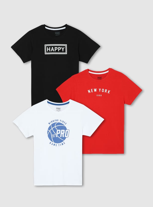 Give his everyday wardrobe an upgrade with this set of T-shirts. It includes three tees with assorted graphic prints, each featuring a classic crew neck and half sleeves. Perfect for mixing and matching to create a fresh, fun look every day.