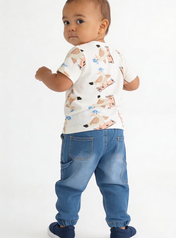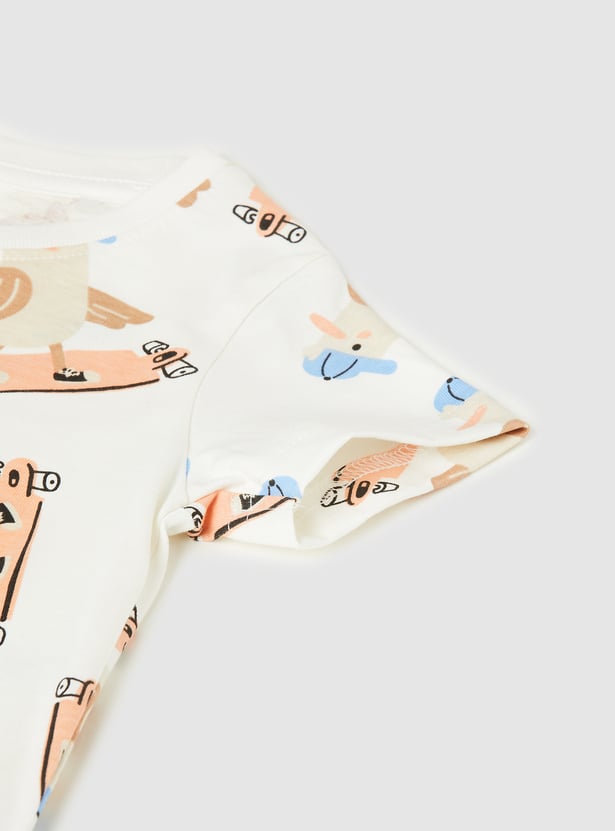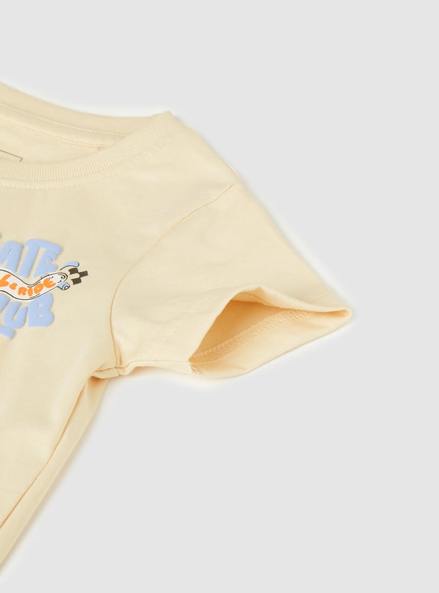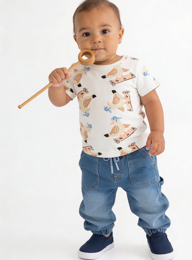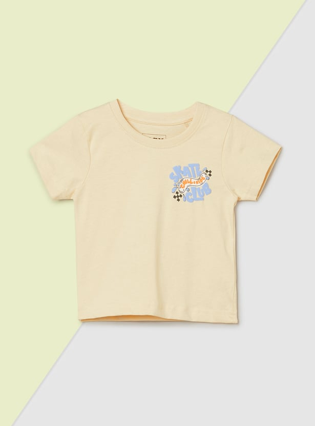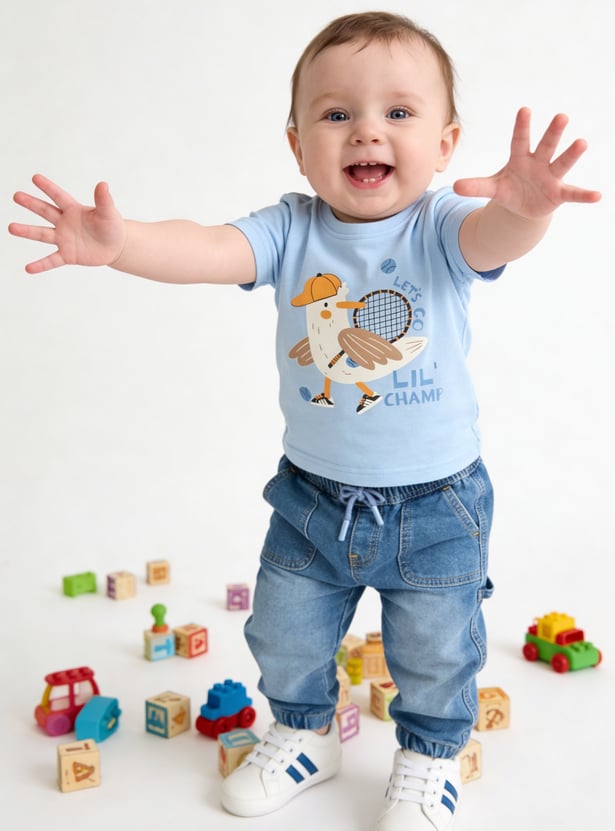 Let your little one enjoy everyday comfort with this pack of 3 printed T-shirts. Designed with a classic crew neck and half sleeves, these versatile tees are crafted from soft, breathable fabric perfect for casual outings and playtime.