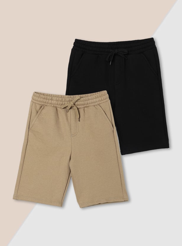 Comfort meets style in this pack of two ribbed shorts, designed with a secure drawstring closure and practical pockets. Perfect for casual days with a textured twist.