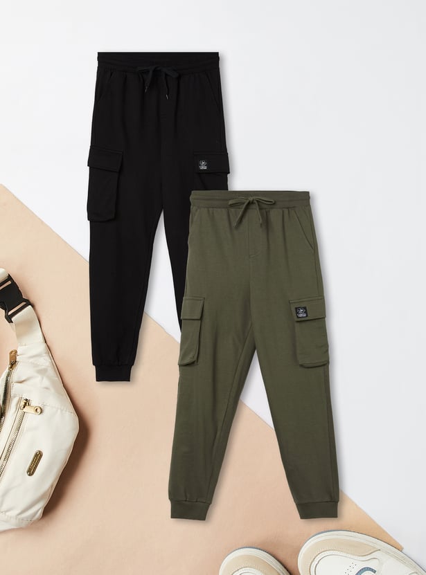 Boys Solid Cargo Joggers - Pack of 2