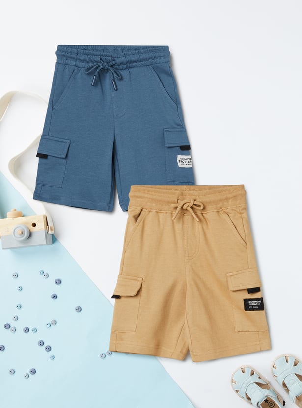Spruce up summerwear for your little one in this preppy pair of solid cargo shorts that feature an elasticated waistband with drawstring detail.