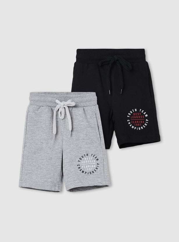 Boys Solid Elasticated Shorts - Pack of 2