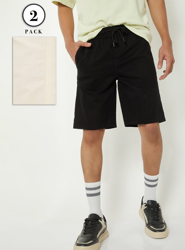 Refresh your casual essentials with this pack of two solid knee-length shorts. Designed with a comfortable drawstring closure and practical pockets, they offer an easy, relaxed fit for everyday wear.