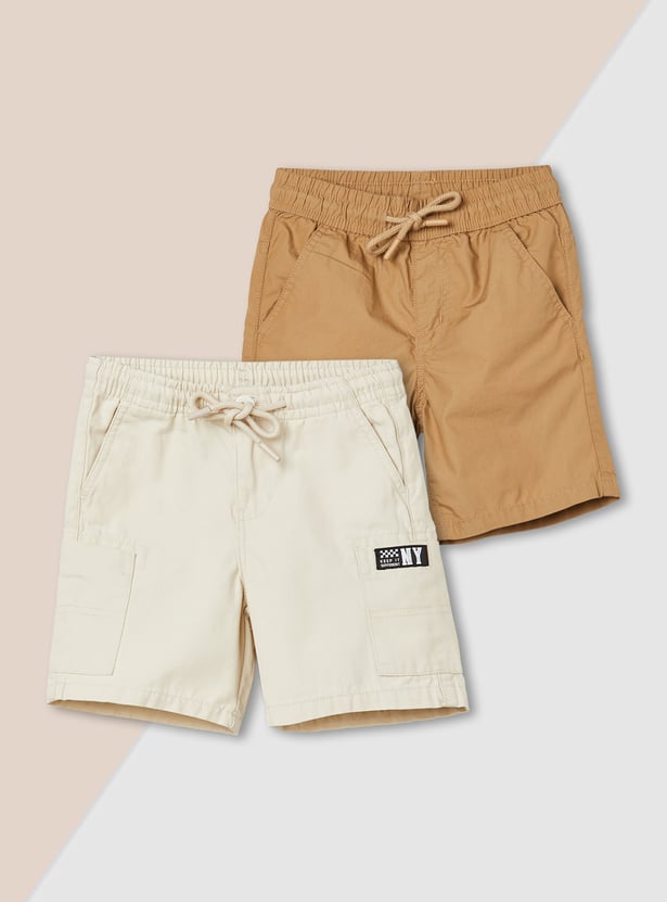 Refresh their casual essentials with this pack of two solid shorts featuring a comfy drawstring closure and practical pockets for everyday ease.