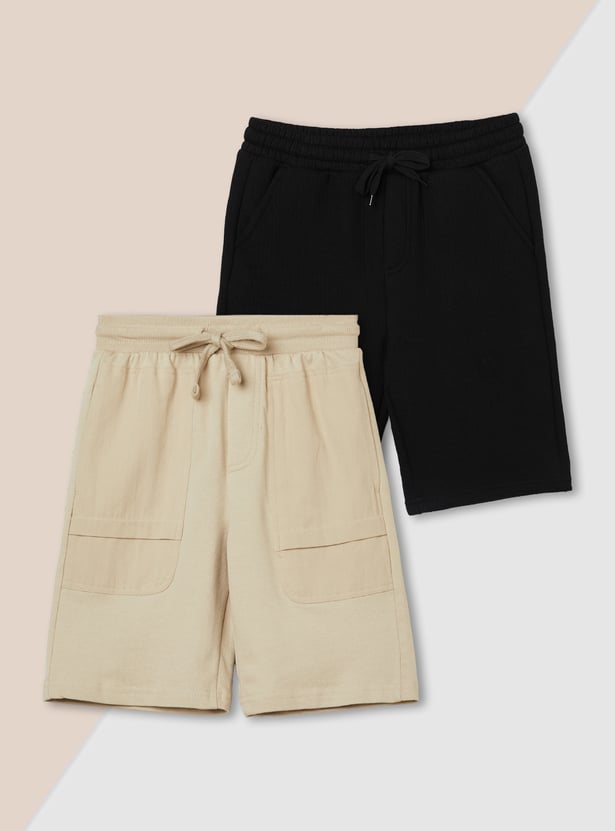 Simple and versatile, this pack of two solid shorts features a comfy drawstring closure and practical pockets. Designed for everyday ease with a relaxed fit and timeless appeal.
