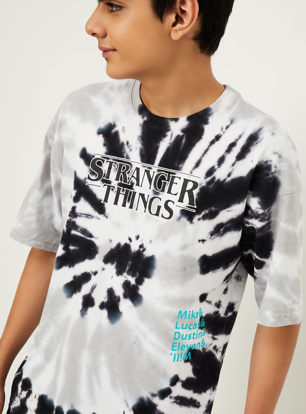 This Stranger Things print T-shirt adds a touch of nostalgia and bold style to your wardrobe. Featuring a classic crew neck and half sleeves, it’s perfect for fans of the iconic show.