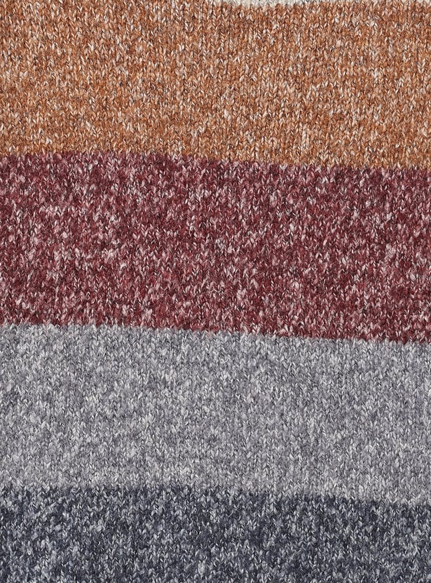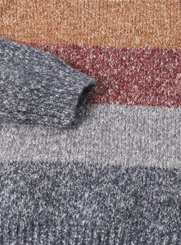 This boys’ striped sweater features a classic crew neck and full sleeves, offering both warmth and timeless style. The soft knit ensures all-day comfort, making it a perfect pick for the winter season.