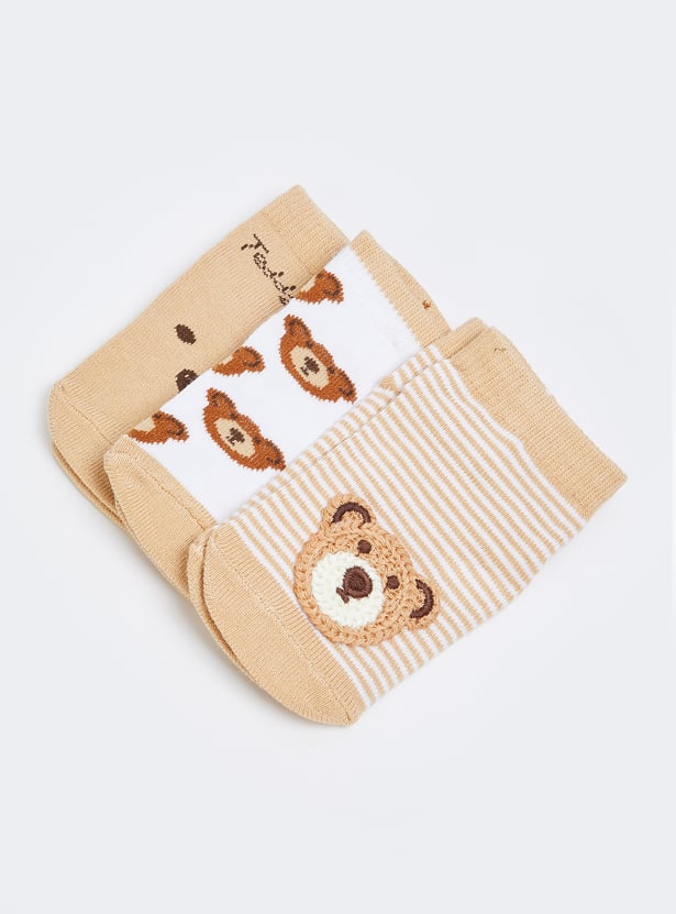 Boys Teddy Bear No-Show Socks - Pack of 3