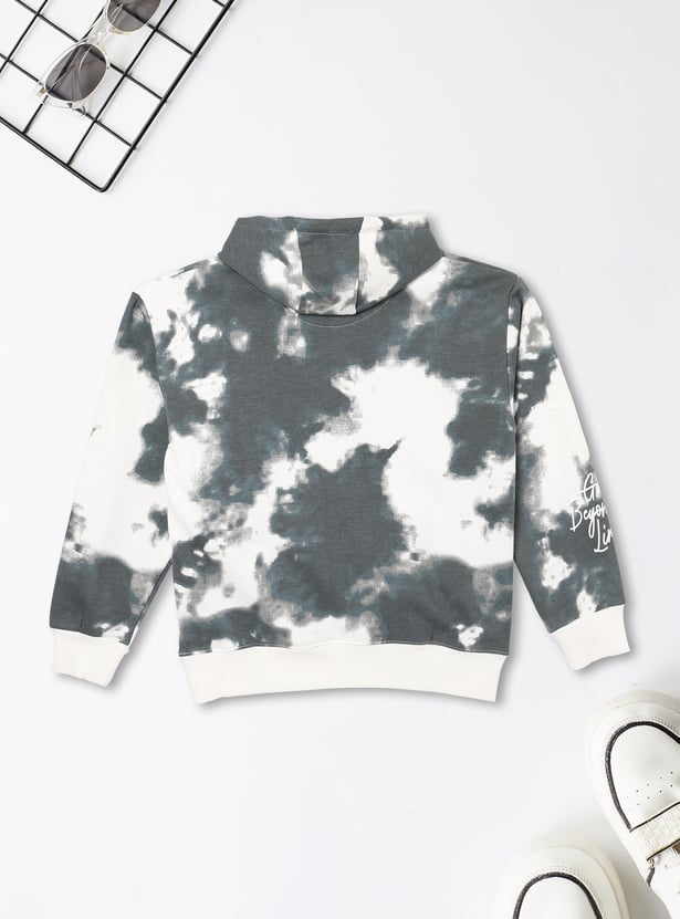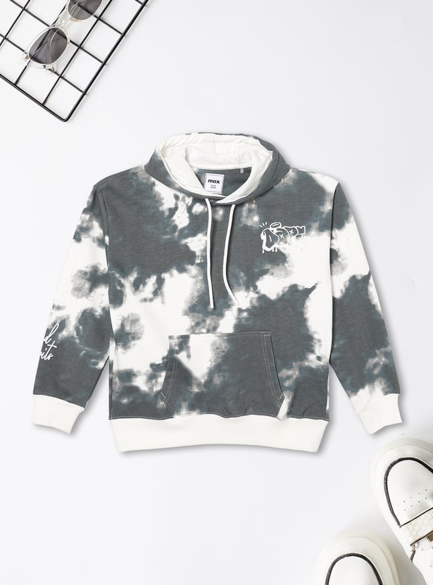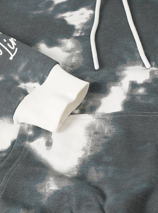 Add a vibrant touch to your casual wardrobe with this tie & dye hooded sweatshirt, featuring full sleeves and kangaroo pockets for comfort and convenience. The colorful pattern brings a fun, laid-back vibe to your everyday style.