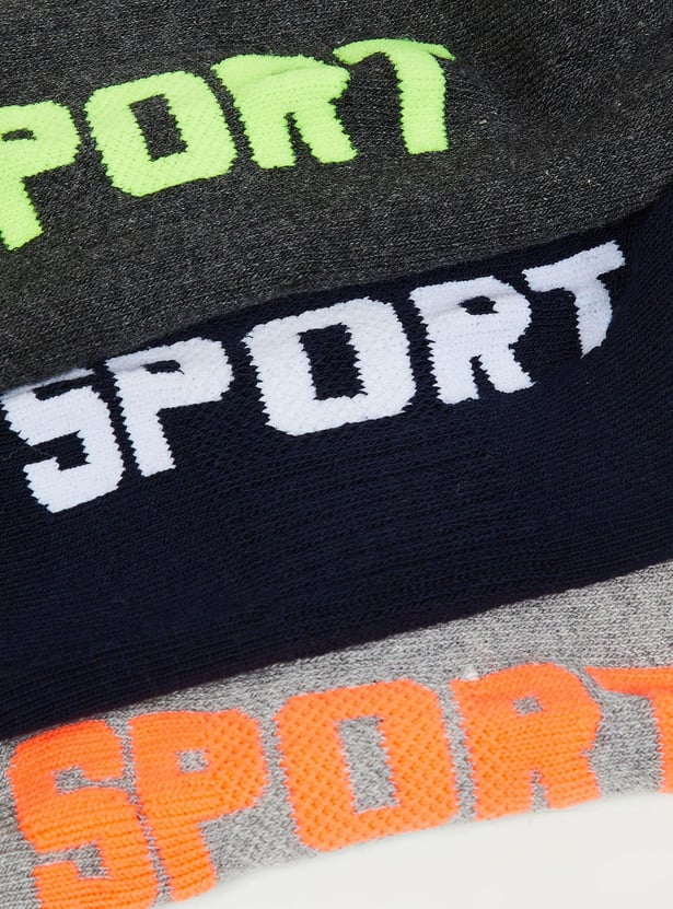Boys Typographic Printed Ankle-Length Socks - Pack of 3