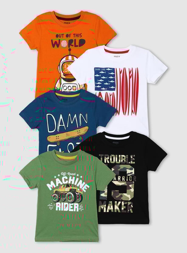 Boys Typographic Printed Crew Neck T-shirt- Pack of 5