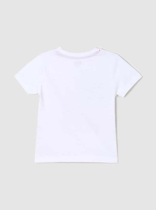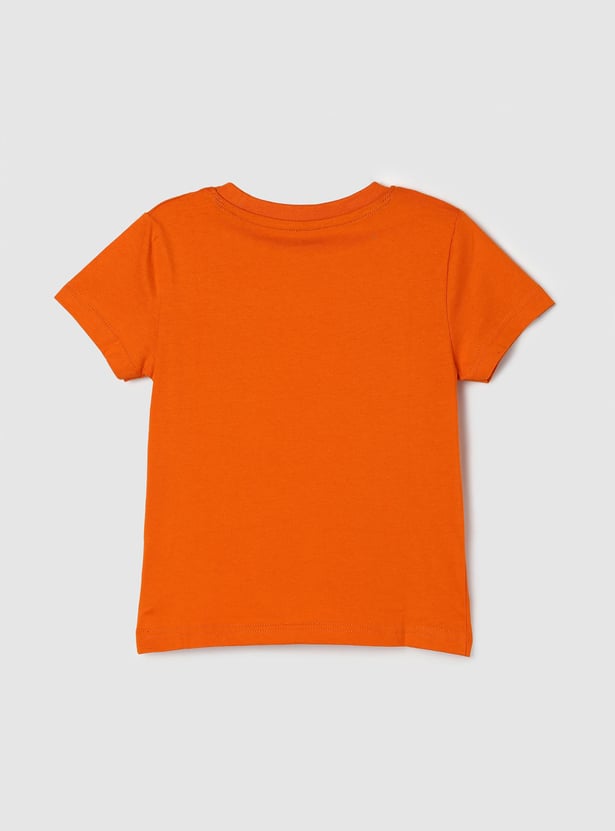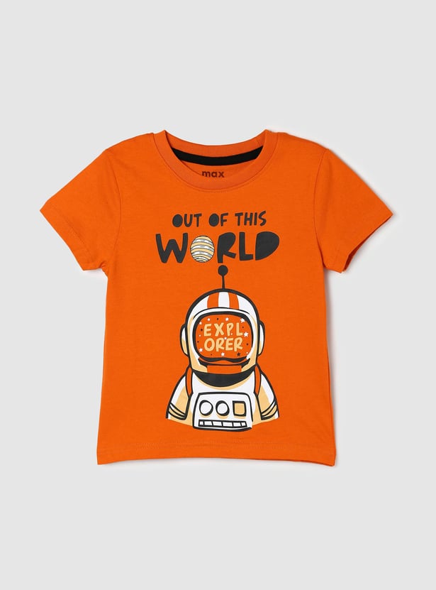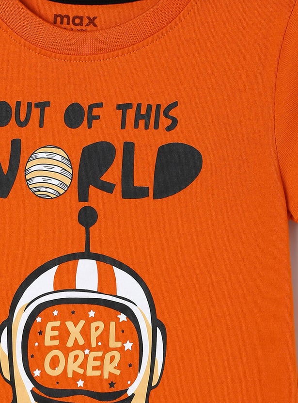 A new day calls for a new trend and your child is ought to slay every day with this t-shirt set. It is designed with a typographic print on the surface, crew neckline, and half sleeves. Team it up with a pair of jeans and lace-up shoes to make a fashion statement.