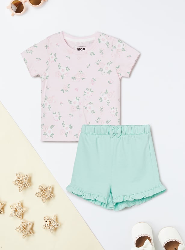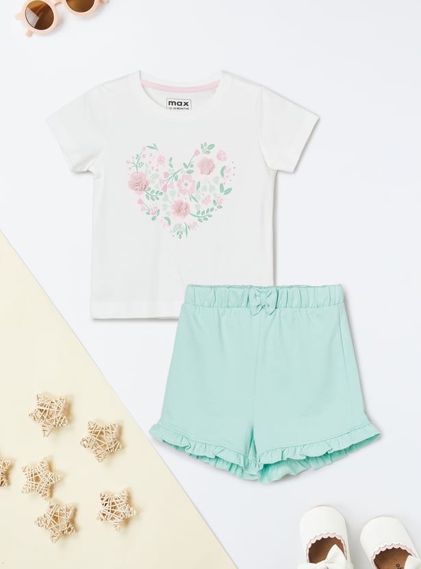 Girls 3-Piece Printed T-shirt with Shorts