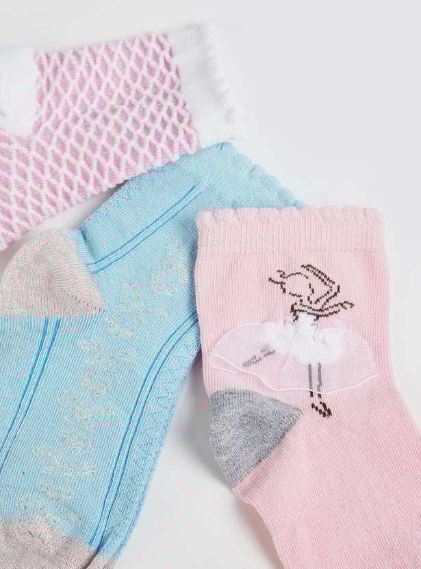 Keep her feet comfy and stylish with this pack of 3 assorted ankle‑length socks, designed for everyday wear and snug support.