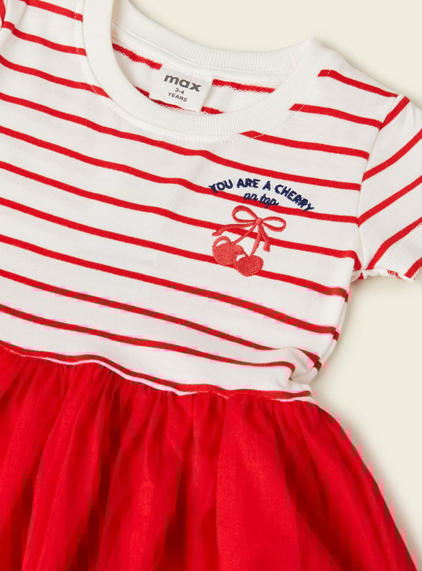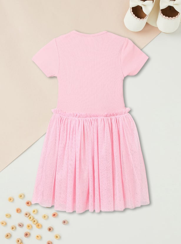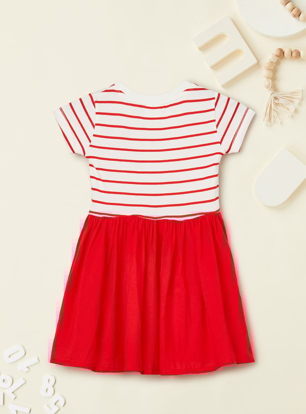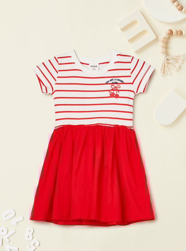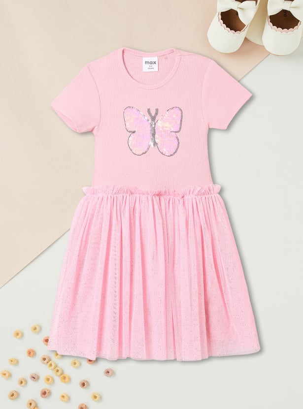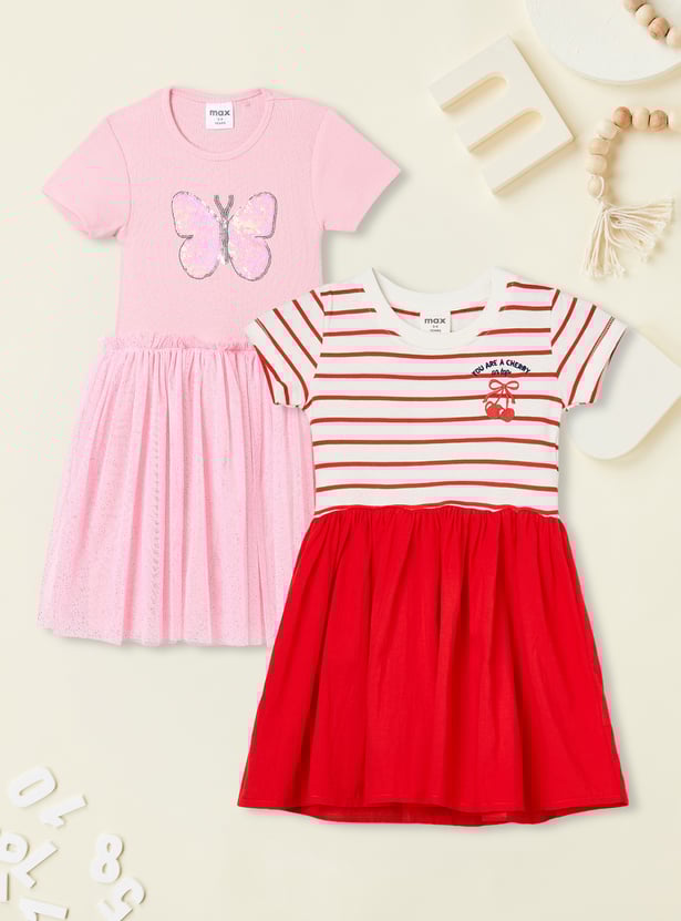 Refresh your wardrobe with this pack of printed dresses, designed with a classic round neck and half sleeves for easy wear. One dress features stylish sequins, while the other features a braided striped pattern.