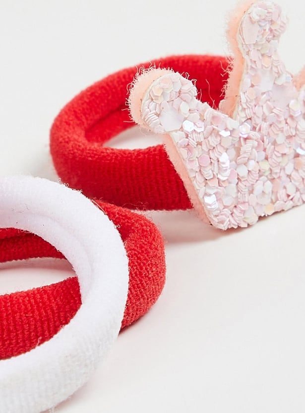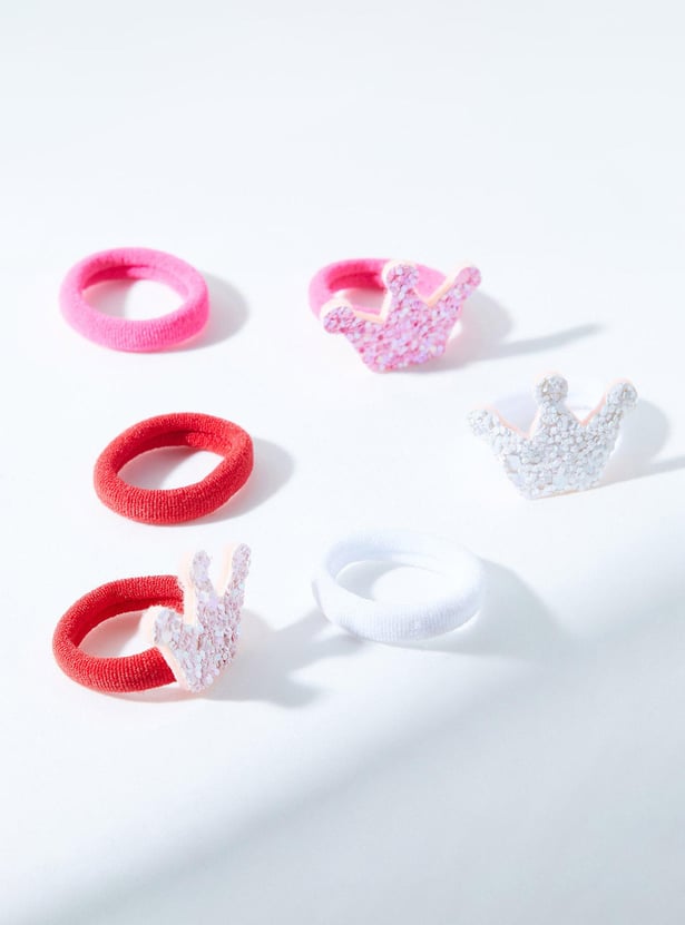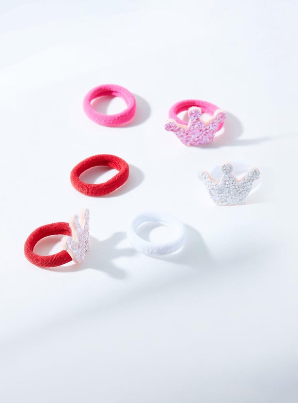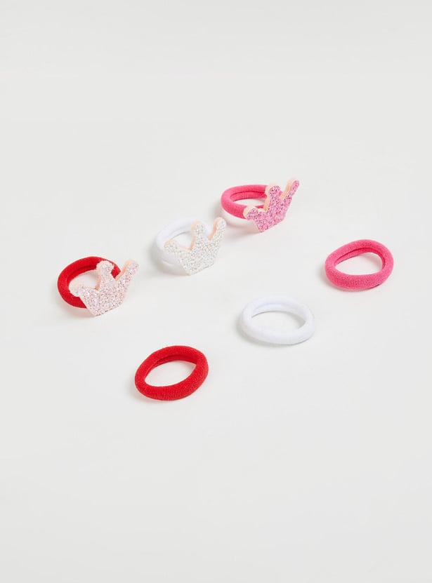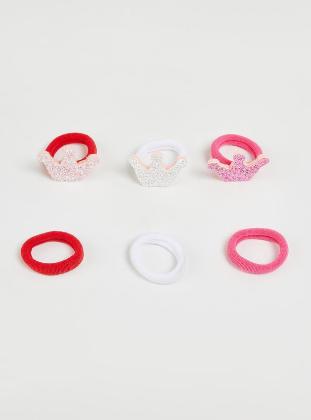 Keep her hair out of the face with this pack of hair bands. It includes 3 bands with ribbed finish and 3 bands with crown accent and a sparkly finish.