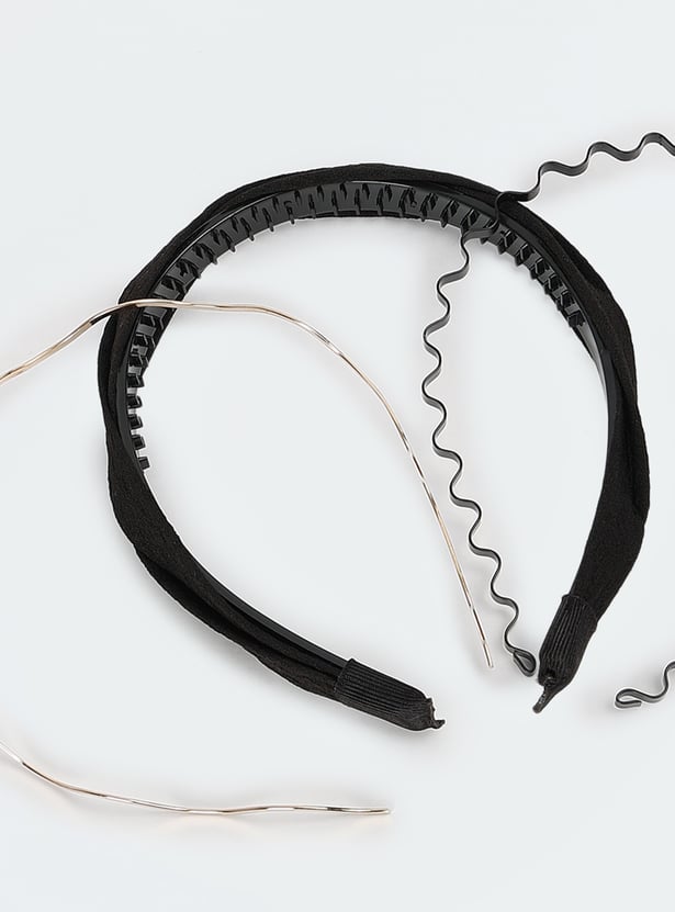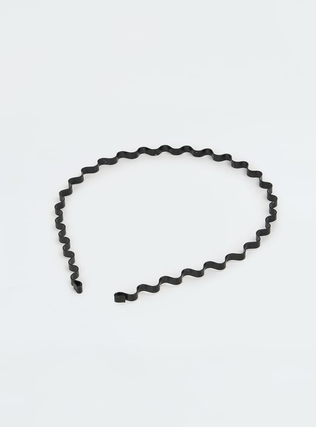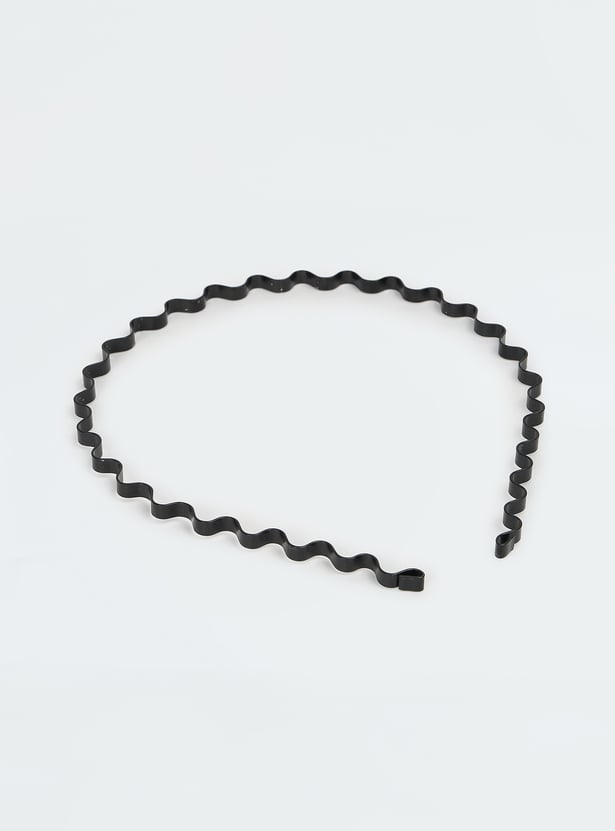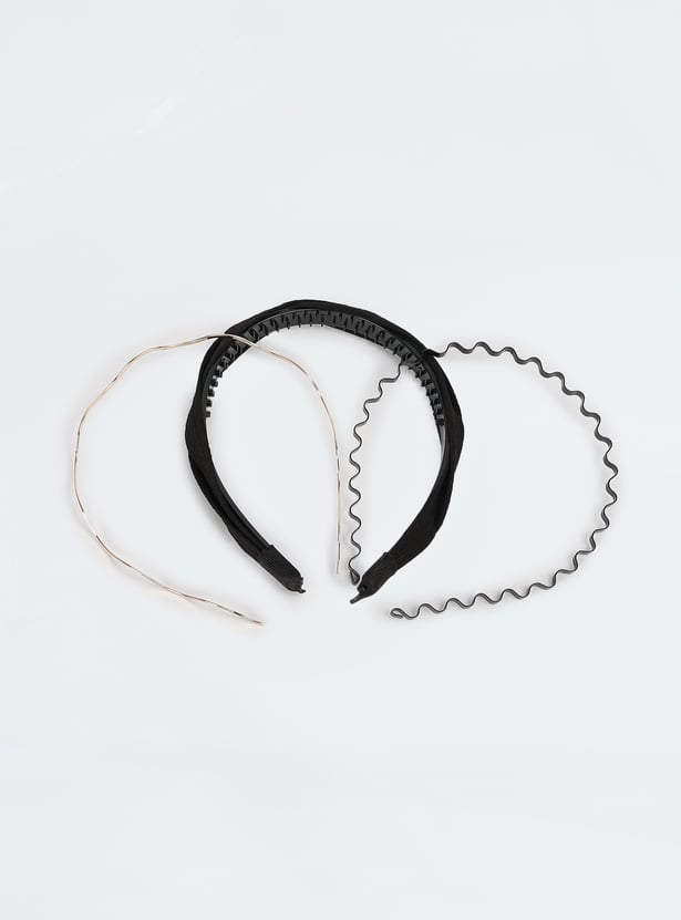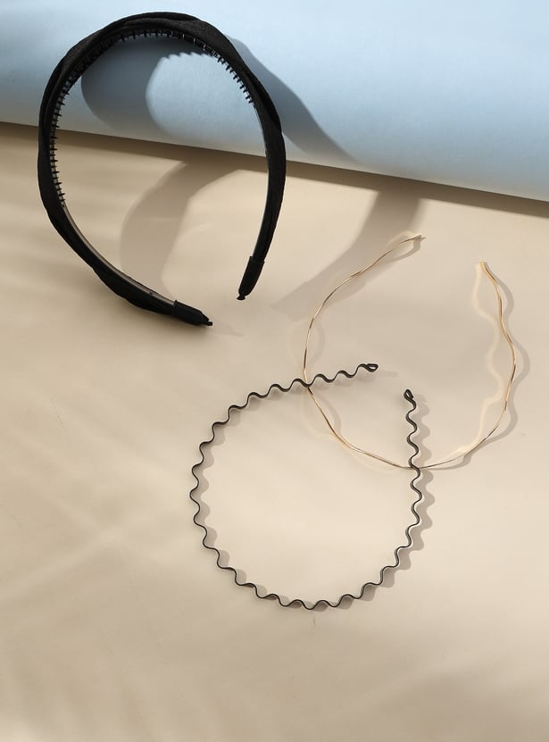 Jazz up your little one's outfit with this charming pack of hairbands! It includes a playful zigzag hairband, a sleek metallic zigzag hairband, and a textured fabric hairband, each featuring stylish details for a decorative look.