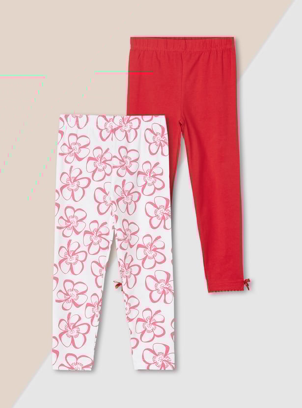 This versatile pack includes one solid and one printed leggings, both designed with an elasticated waist for a snug yet comfortable fit.