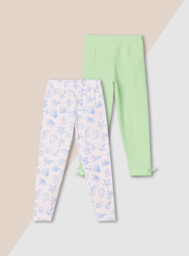 Add charm to everyday essentials with this assorted leggings pack of 2. Designed with an elasticated waist for a snug fit and finished with a cute bow at the hem, these leggings combine comfort with a touch of style.