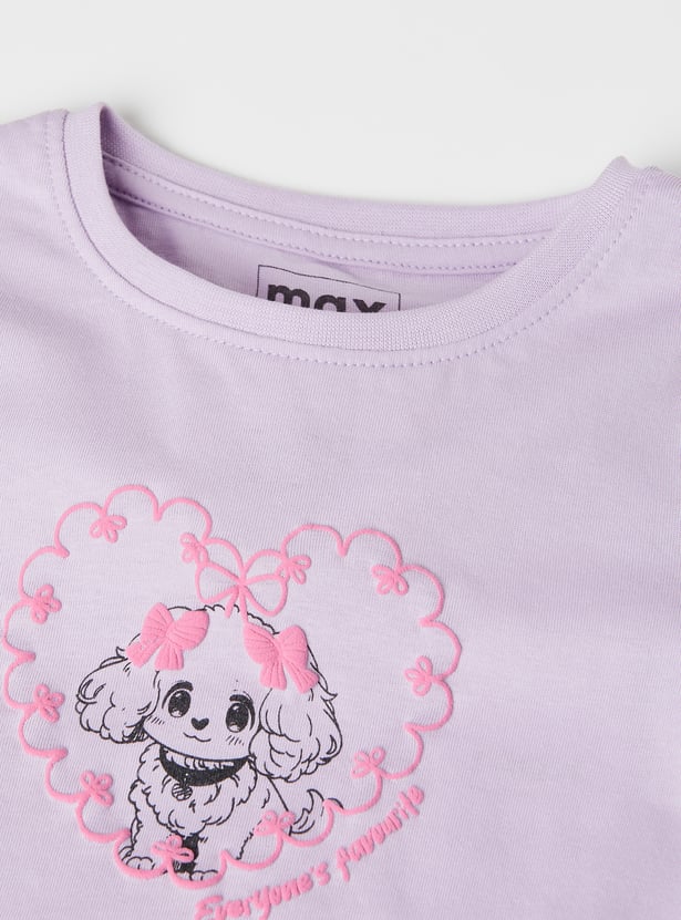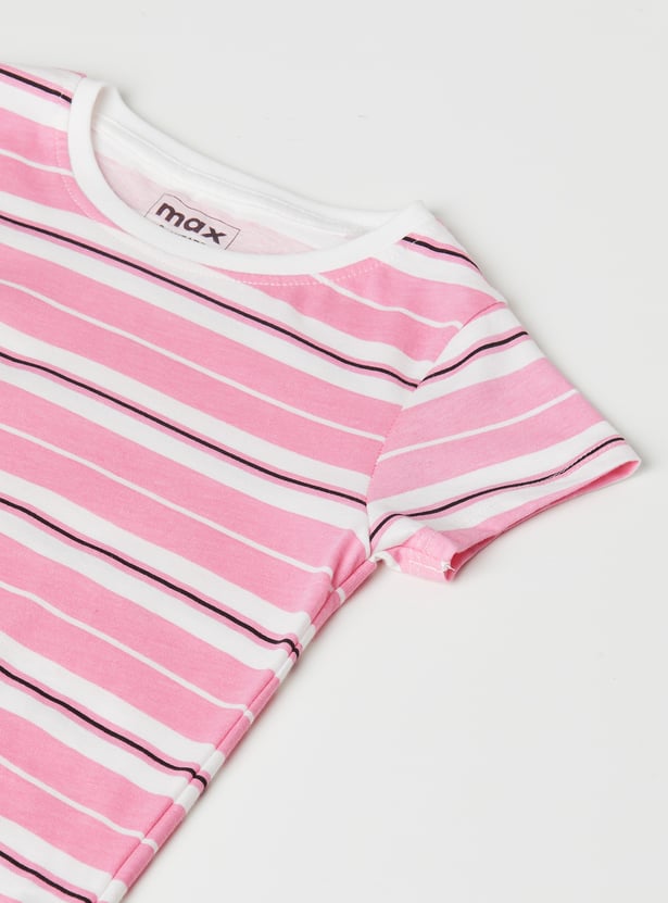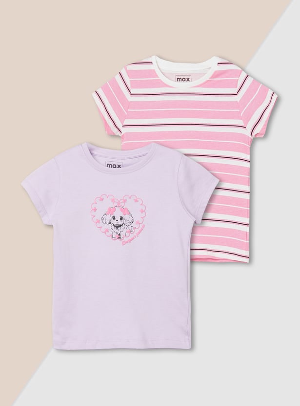 This sweet duo pairs a classic striped T-shirt with a charming chest-print style, both finished with round necklines and easy half sleeves for all-day comfort.