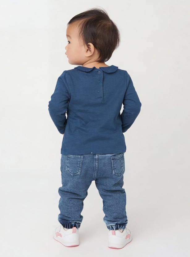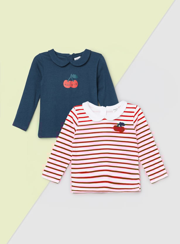 Refresh your wardrobe with this assorted pack of 2 tops. Each piece features a charming Peterpan collar, full sleeves, and a snap button closure at the back, blending comfort with a touch of classic elegance.