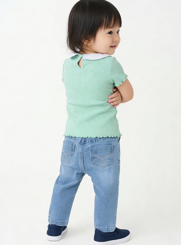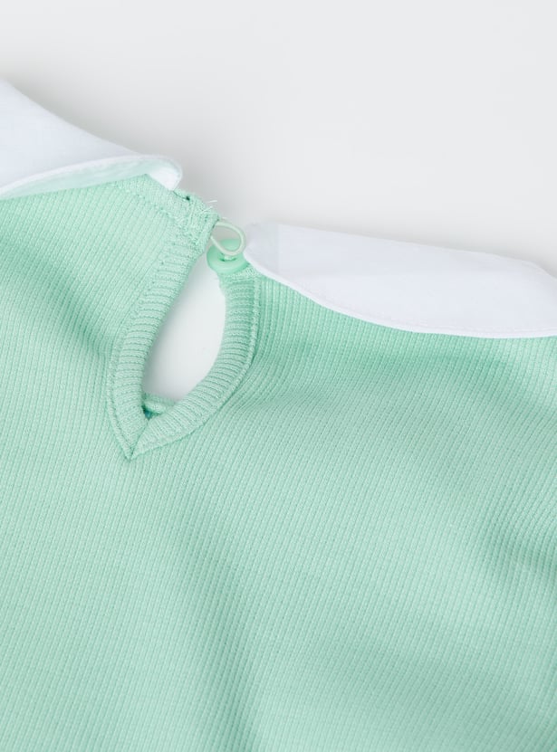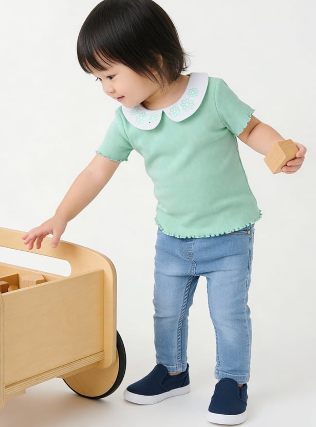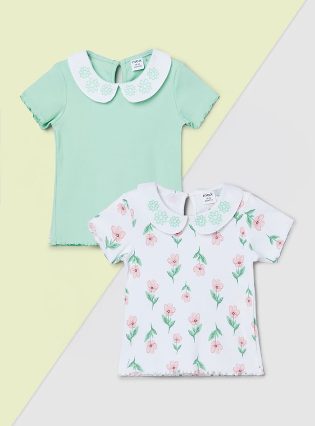 Refresh your wardrobe with this assorted top pack of 2. Each piece features a charming Peter Pan collar, half sleeves, and a button closure at the back for a neat finish. Designed for comfort and style, these tops are perfect for both casual and semi-formal occasions.