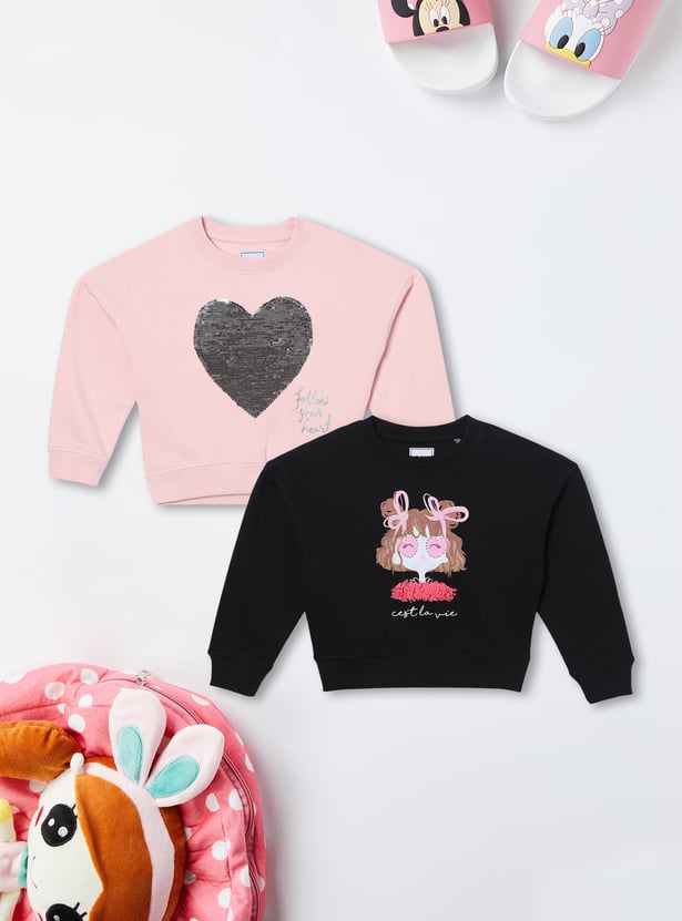 This pack of sweatshirts comes with an embellished surface, full sleeves and a round neckline.