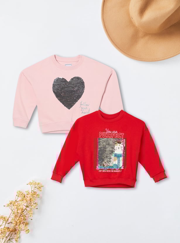 This pack of sweatshirts comes with an embellished & printed surface, full sleeves and a round neckline.