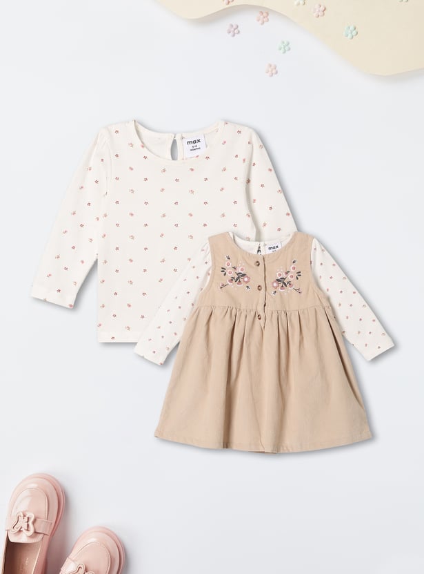 Girls Embroidered A-line Dress with T-shirt - Pack of 2