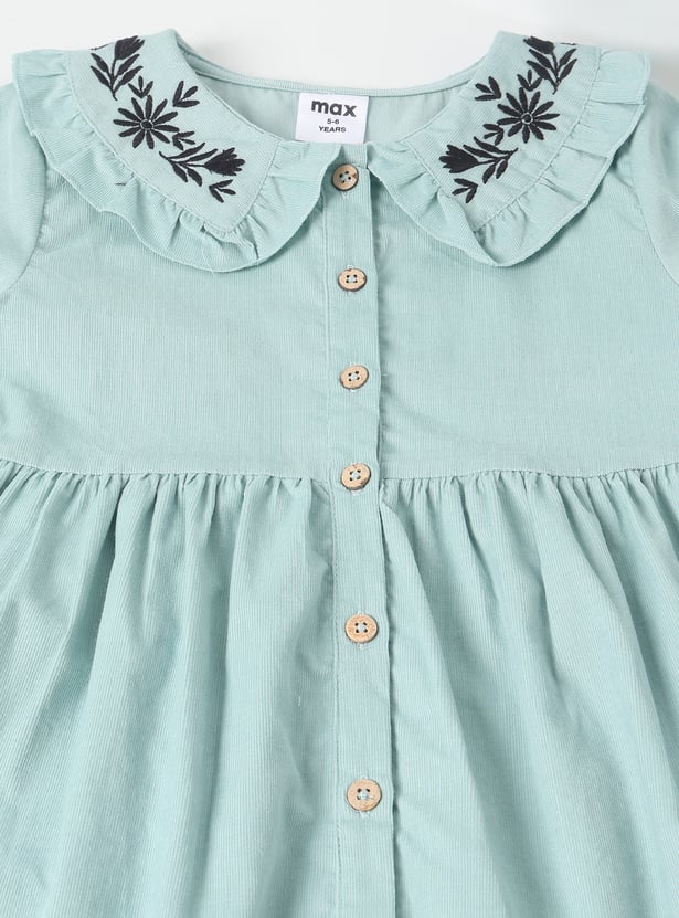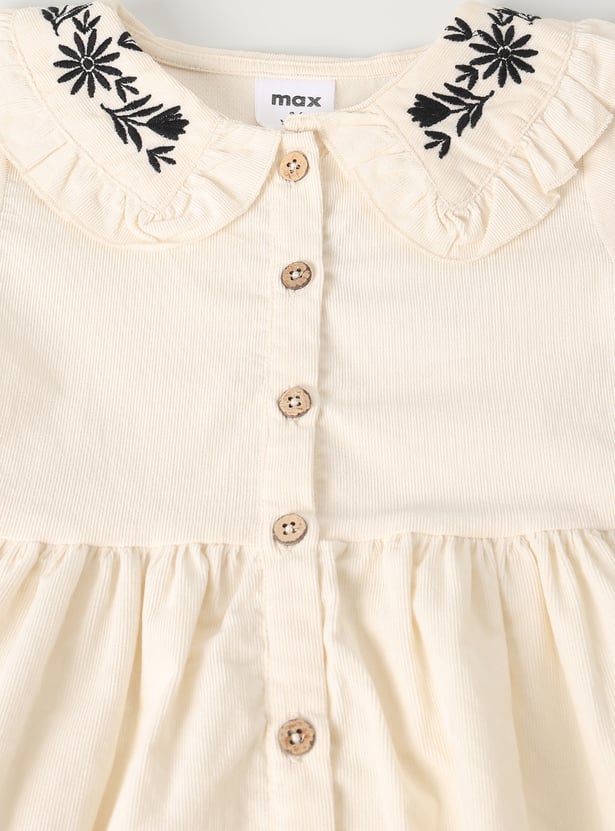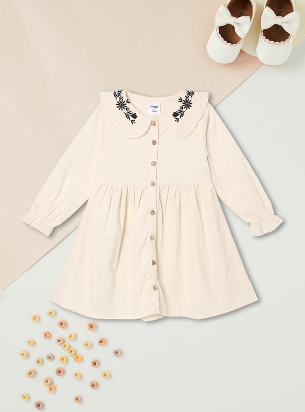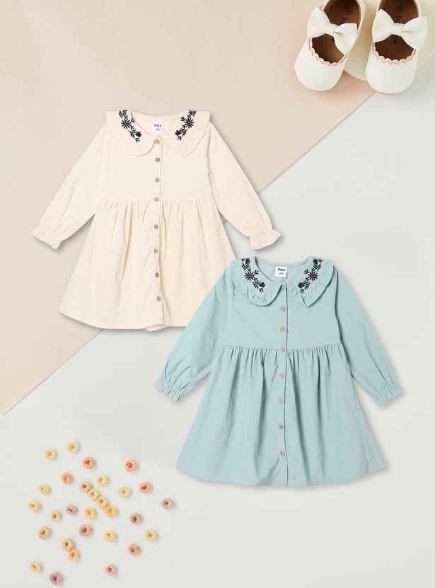 Add a charming touch to your wardrobe with this pack of two embroidered dresses. Designed with a classic Peter Pan collar and button closure, they combine delicate detailing with timeless style.