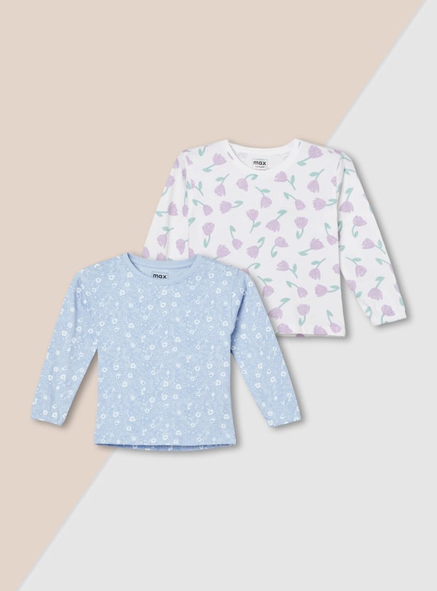 Add a touch of charm to your wardrobe with this pack of 2 floral print t-shirts, featuring round necks and full sleeves. Soft and comfortable, they’re perfect for casual, everyday wear.