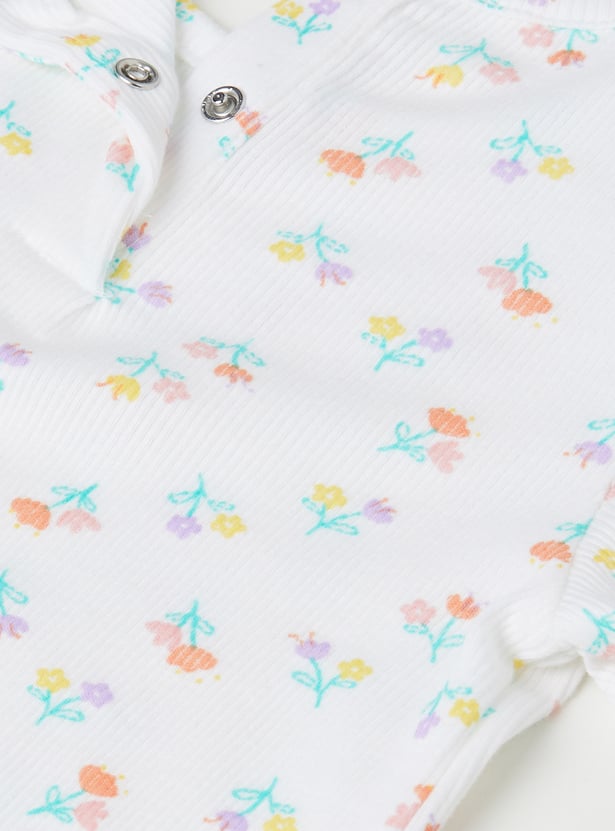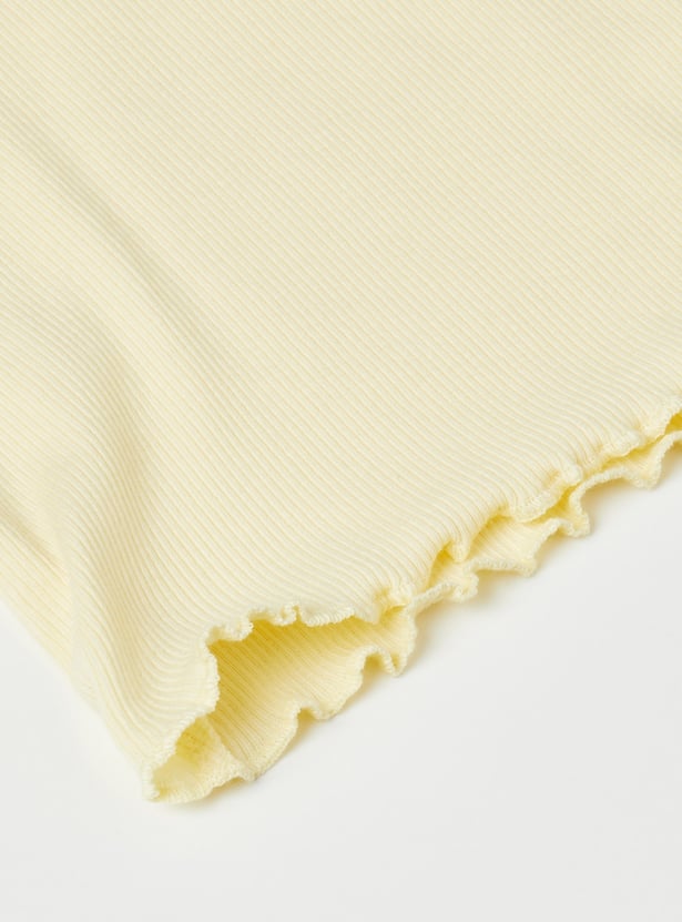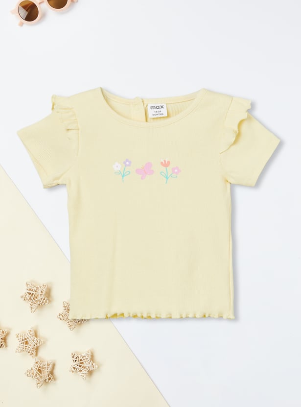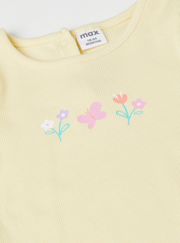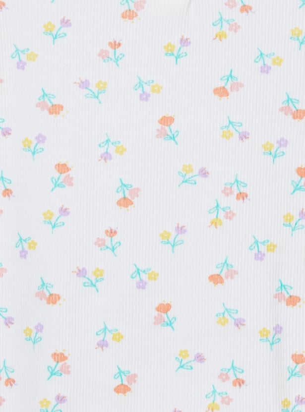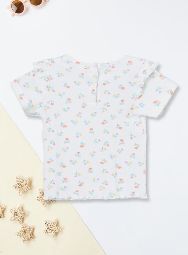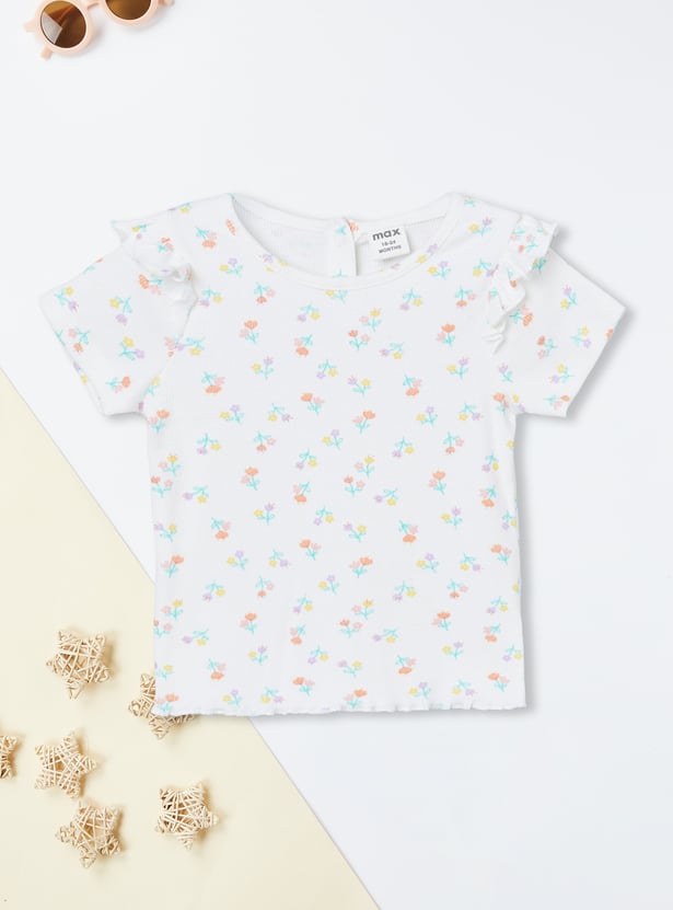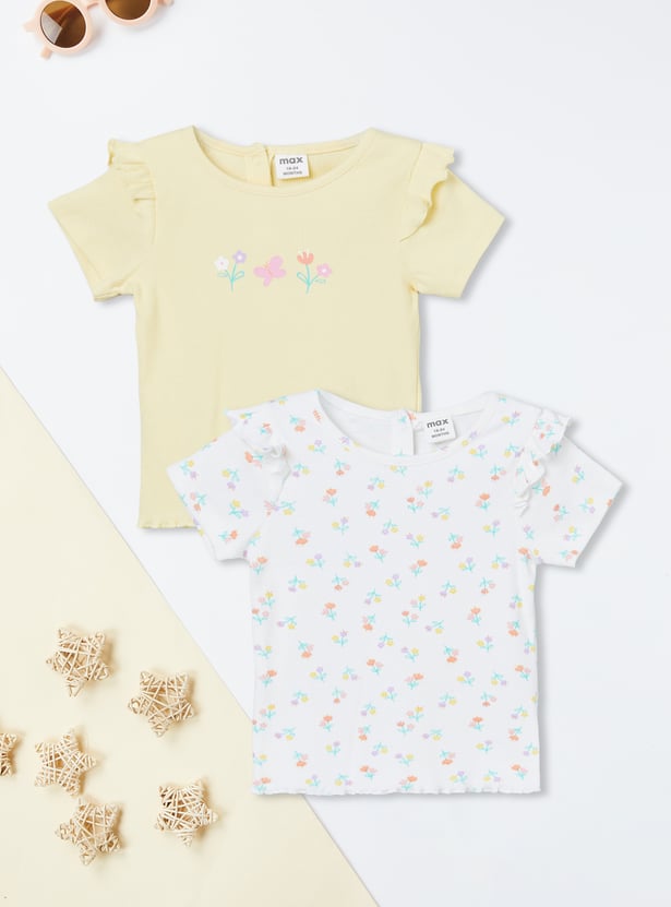 Sweet florals meet playful details in this charming pack of two ribbed tops. Designed with a round neck, half sleeves, delicate ruffles on the shoulders, and trendy lettuce-edge hems, they bring a stylish twist to everyday wear. The set includes one top with a pretty chest floral print and another with all-over floral prints, making it perfect for effortless mix-and-match looks.