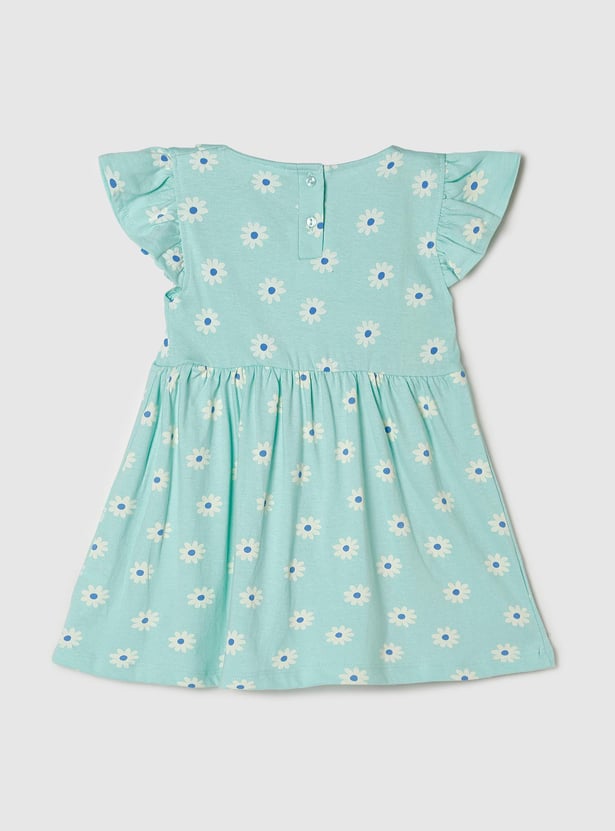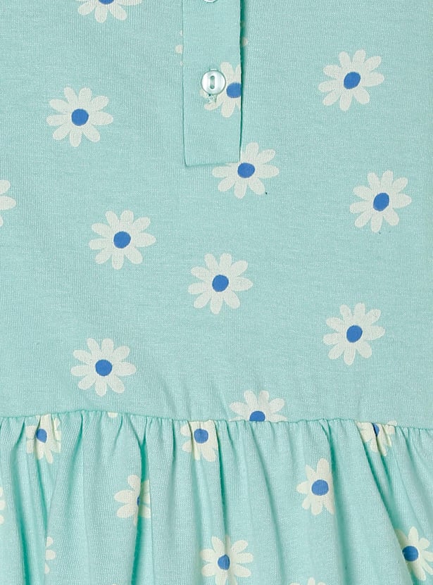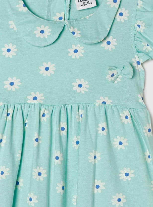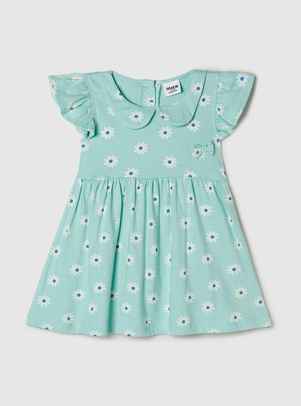Girls Floral Printed Peterpan Collar Fit and Flare Dress
