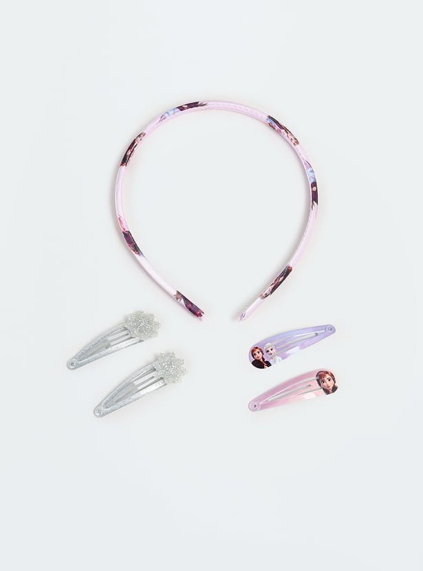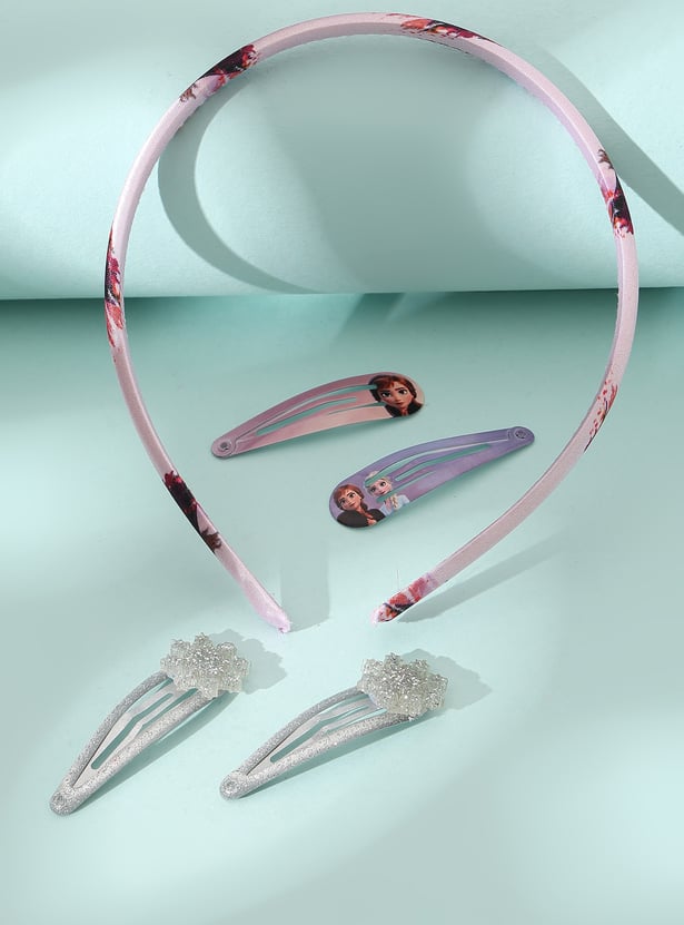 Let her hair shine as brightly as Elsa’s powers with this pack of hair accessories. Featuring 2 printed tic tac clips and a pair with charming snowflake accents, plus a matching headband, this set is perfect for any Frozen fan.