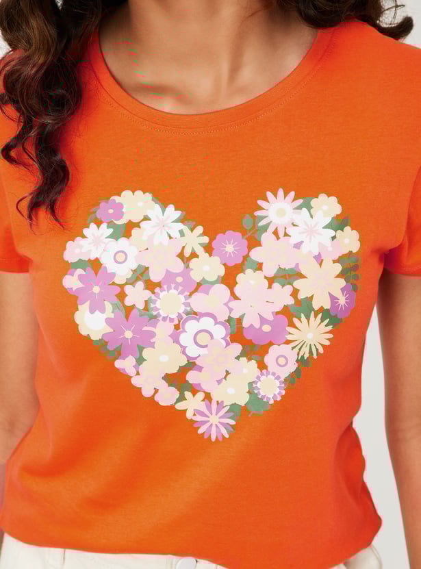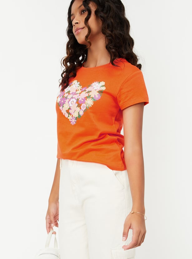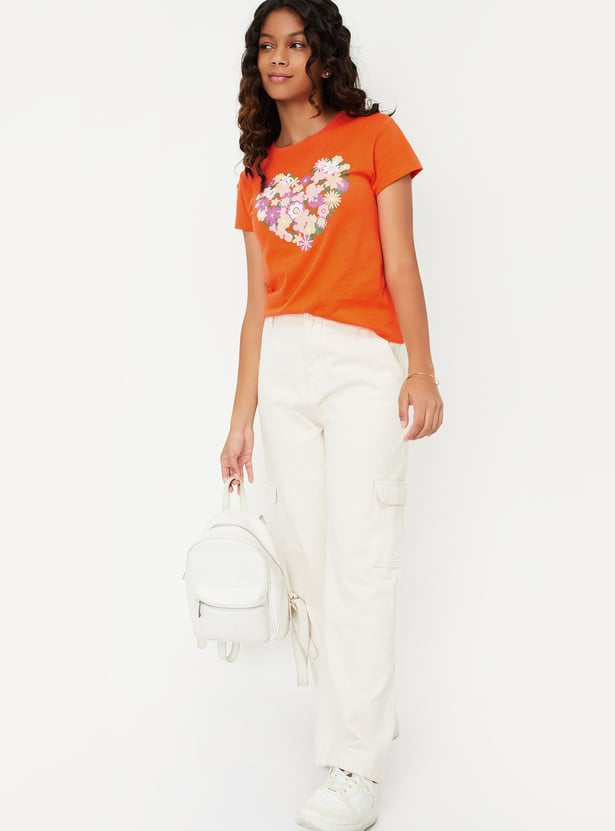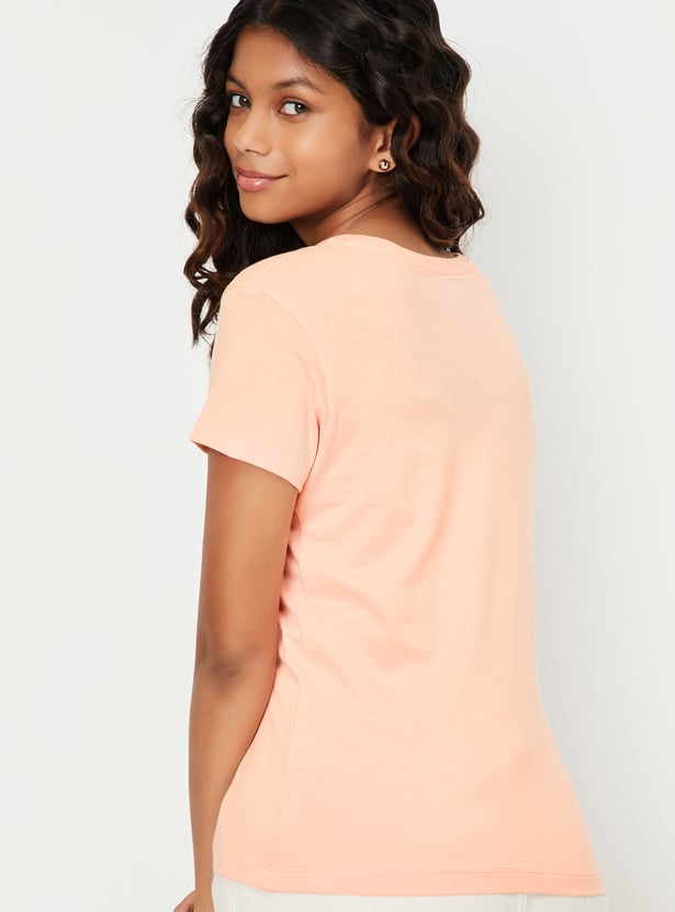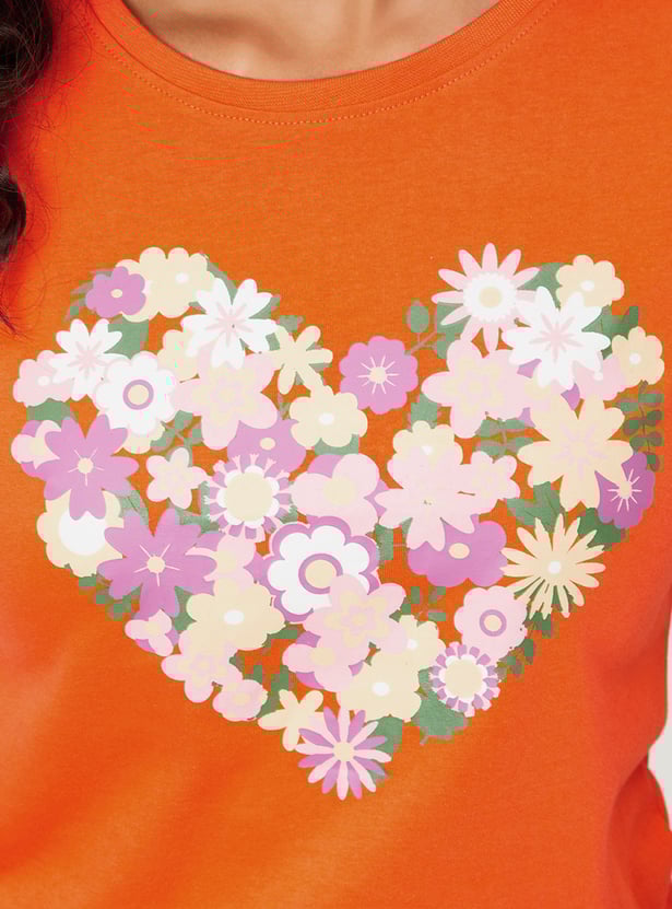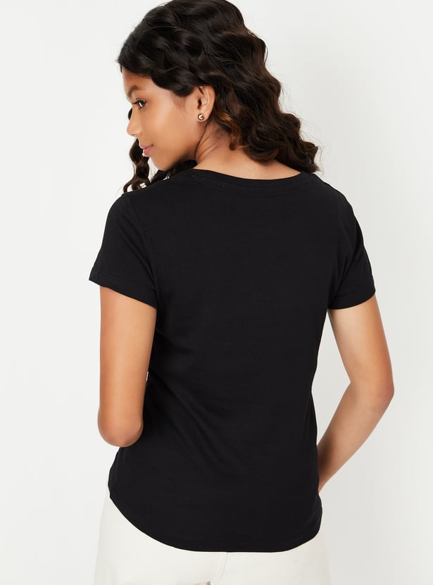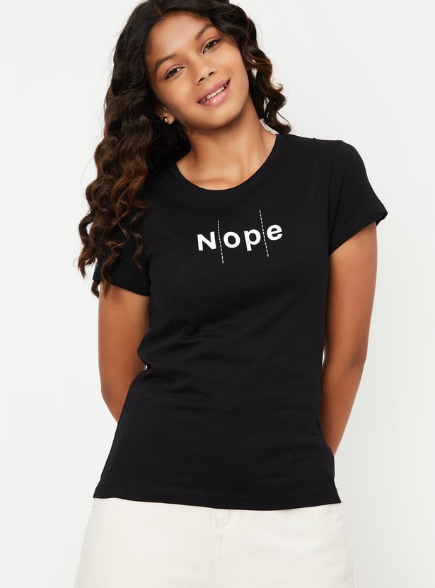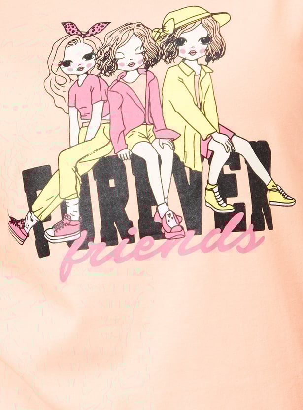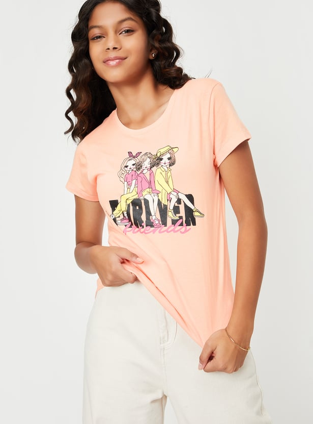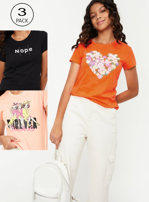 Upgrade her wardrobe with this set of T-shirts. Each of the three T-shirts in the set features a unique graphic print, a round neck, and half sleeves, providing a range of stylish options for her everyday wear.