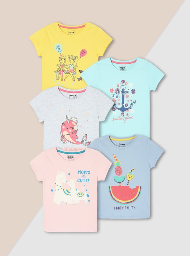 Girls Graphic Printed T-shirt - Pack of 5
