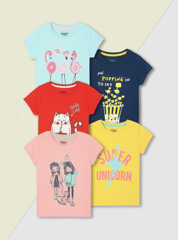 Girls Graphic Printed T-shirt - Pack of 5