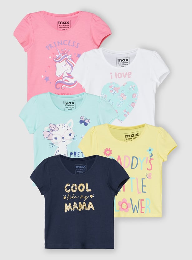Girls Graphic Printed T-shirt - Pack of 5